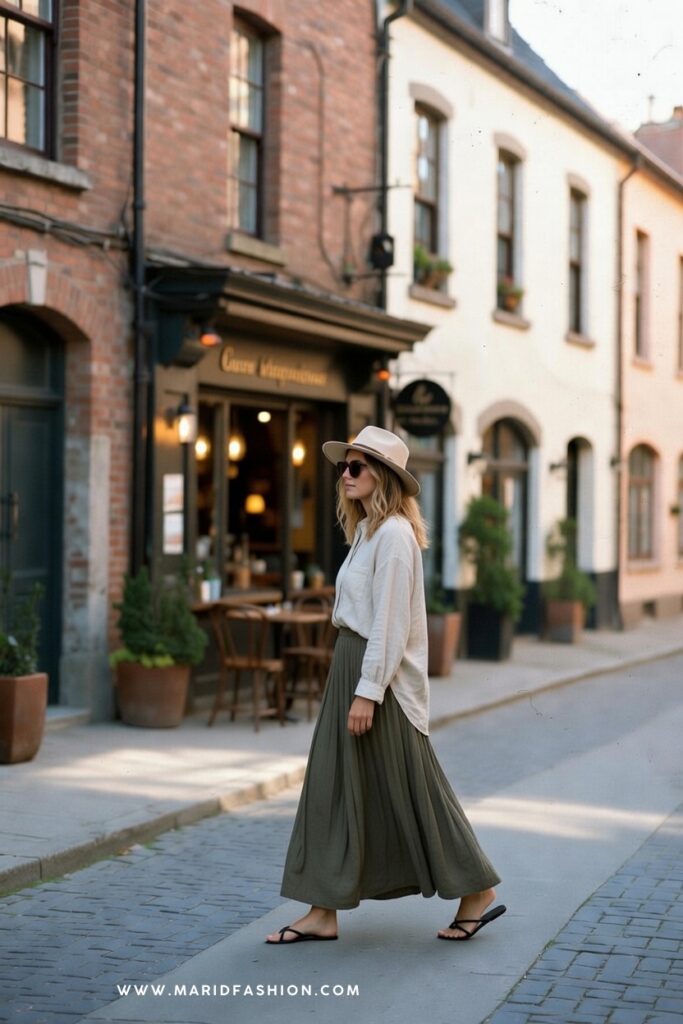 On the other hand, relaxed shoes like sneakers or flat sandals can soften a more structured look and make it feel comfortable for everyday wear.